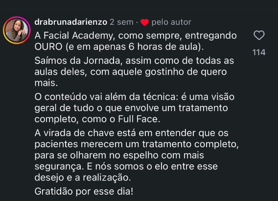 Mais do que um documento, é o registro de que você investiu um dia inteiro com a Facial Academy, construindo conhecimento em planejar, executar e vender protocolos Full Face com vive e ensina isso há 10 anos.